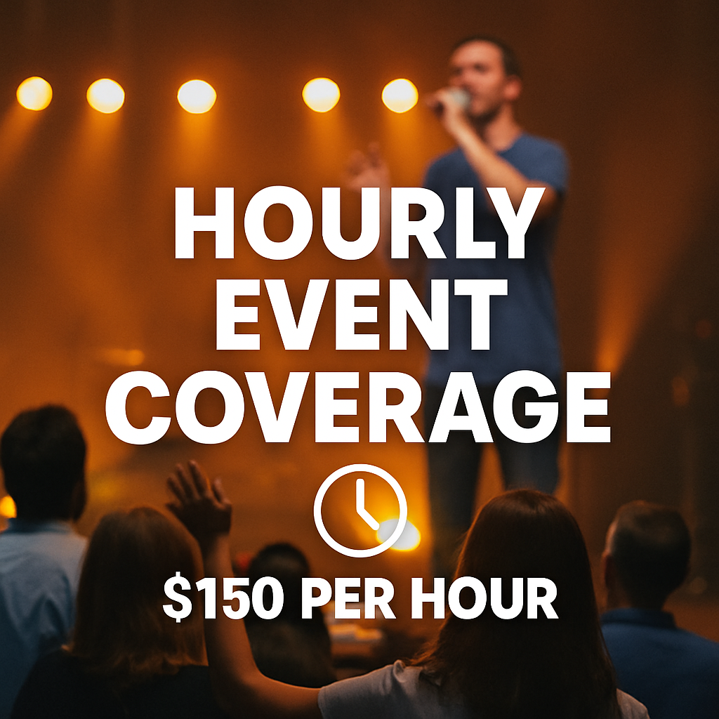 Need just a little video magic? This flexible hourly option is perfect for quick events, ribbon cuttings, vendor spotlights, or last-minute media support.